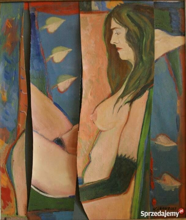 W ofercie : Akt,olej,płótno,collage;54 x 63 cm,sygn.p.d.: W.SARNECKI,ok.2006/7 Studiował na Wydziale Malarstwa Akademii Sztuk Pięknych w Krakowie. Kształcił się pod kierunkiem prof. Janiny Kraupe-Świderskiej i prof. Adama Marczyńskiego, w pracowni, którego w 1974 roku uzyskał dyplom. W ostatnich latach żył i tworzył w odosobnieniu. Z obrazów artysty, który zawsze wychodził - jak sam mówił - od natury można odczytać stany uczuciowe i niepokoje ich autora, przejawiające się w dynamicznym, udramatyzowanym rysunku. Po częściowej utracie wzroku zmienił się u artysty sposób widzenia rzeczywistości, poprzez płaskie postrzeganie świata, malarz skupił się na przestrzeni czysto malarskiej ukształtowanej poprzez układ form i kolorów. W prezentowanej pracy można dostrzec wszystkie cechy dojrzałego malarstwa Wojciecha Sarneckiego (1948-2011).Sprawdź zainteresowanie tym ogłoszeniem