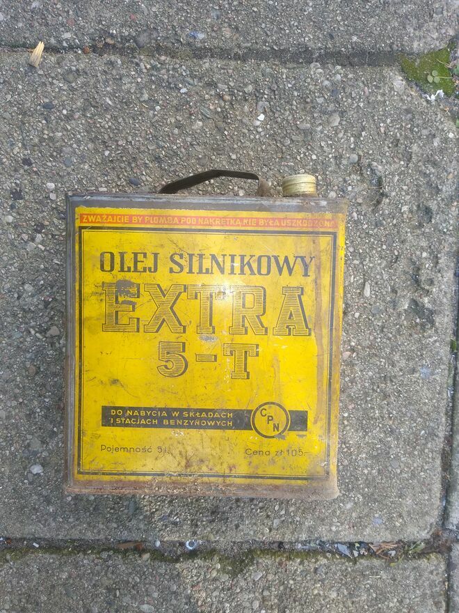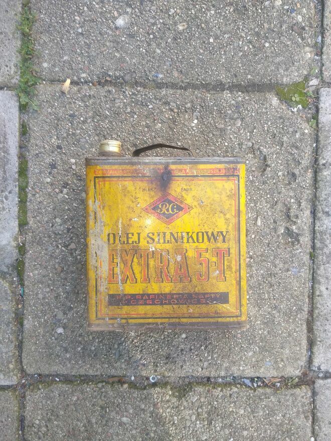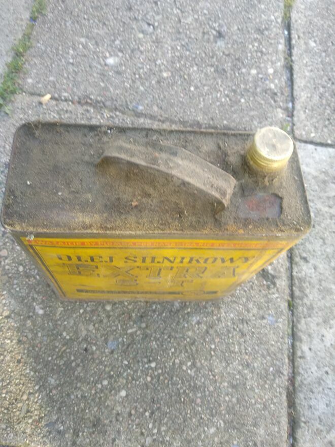 Antyk, stara bańka, karnister na olej, 50 zł.