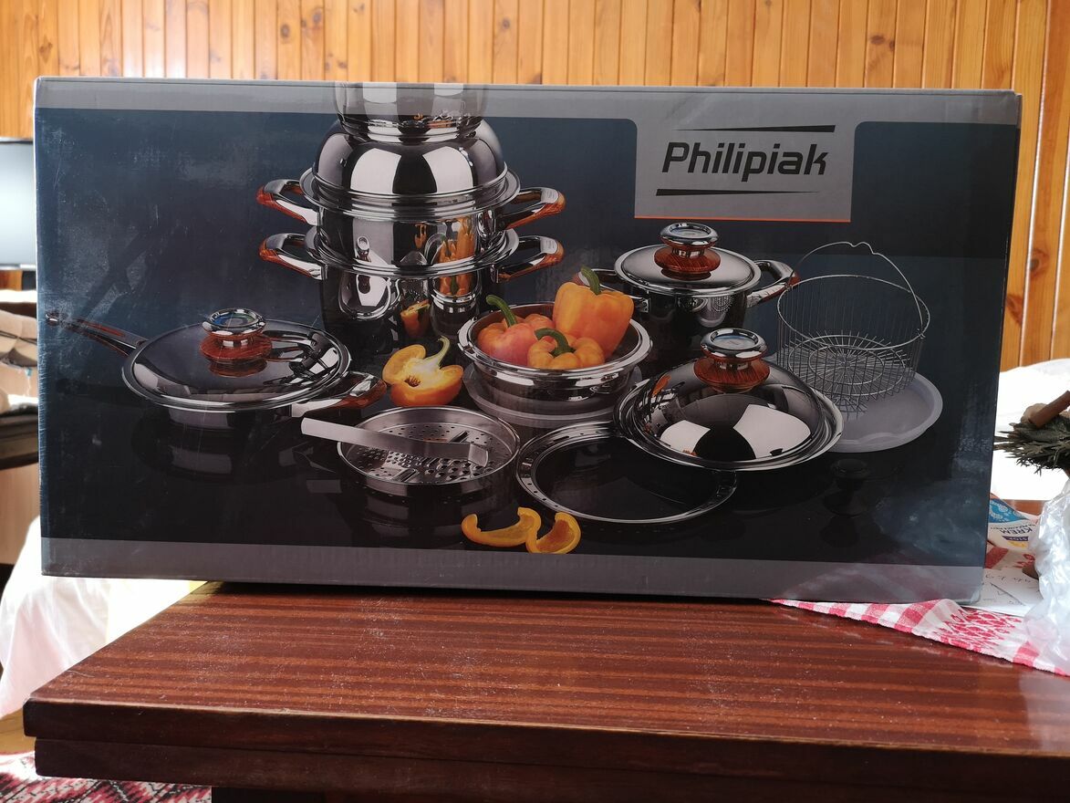 Sprzedam Garnki Philipiak i naczynia kuchenne jest to połączenie najwyższej jakości stali szlachetnej Cr-Ni i nowoczesnych technologii produkcyjnych i włoskiego wzornictwa . Garnki Philipiaka pozwalają na zdrowe przygotowanie posiłków bez wody ,gotowanie na parze oraz na smażeniu bez dodawania tłuszczów .zestaw pozwala na gotowanie posiłków na jednym źródle energii dzięki gotowaniu w systemie wieżowym.Sprzedajemy zestaw prywatnie nie współpracując z firmą.