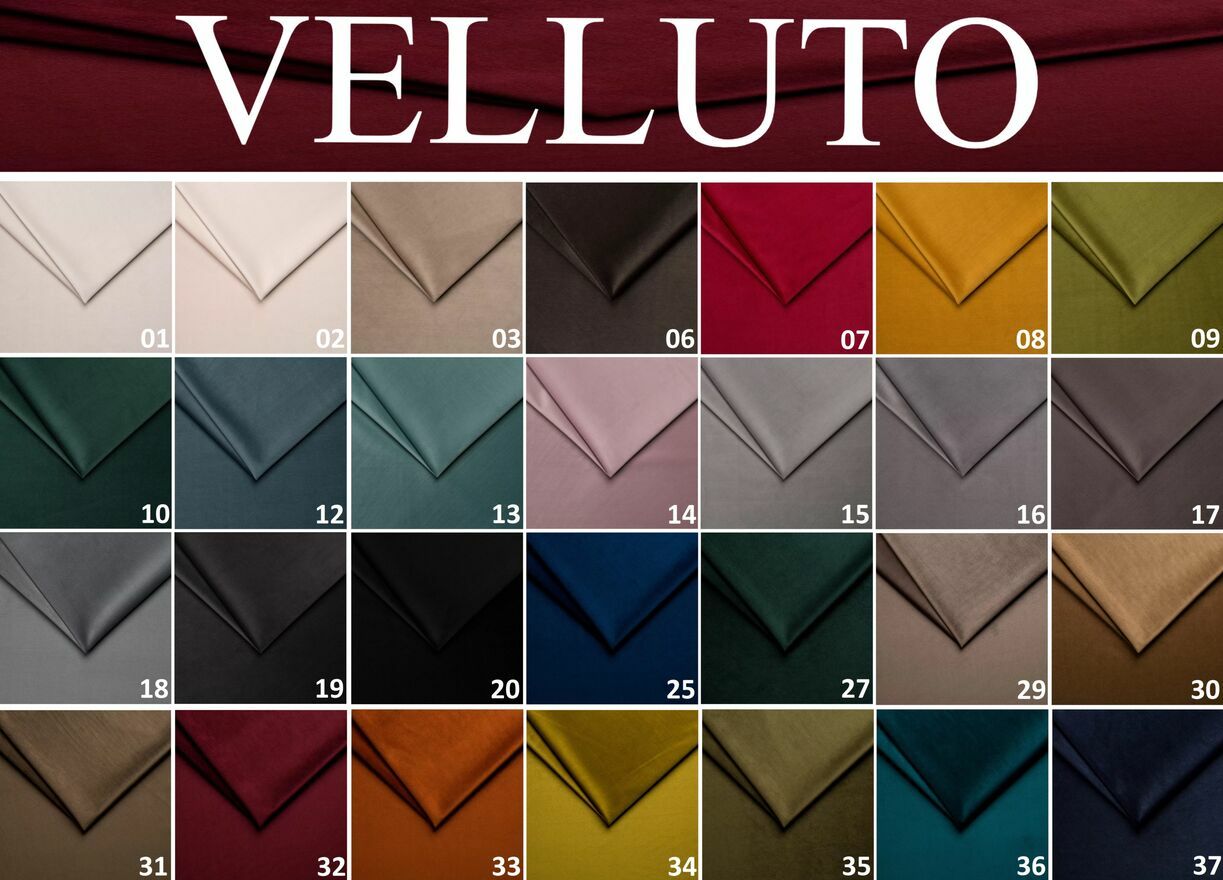 Velluto to gęsta tkanina meblowa typu welurowego, niezwykle miękka i aksamitna w dotyku. Charakteryzuje się wyjątkową odpornością na ścieranie, co czyni ją idealnym wyborem do produkcji mebli tapicerowanych.