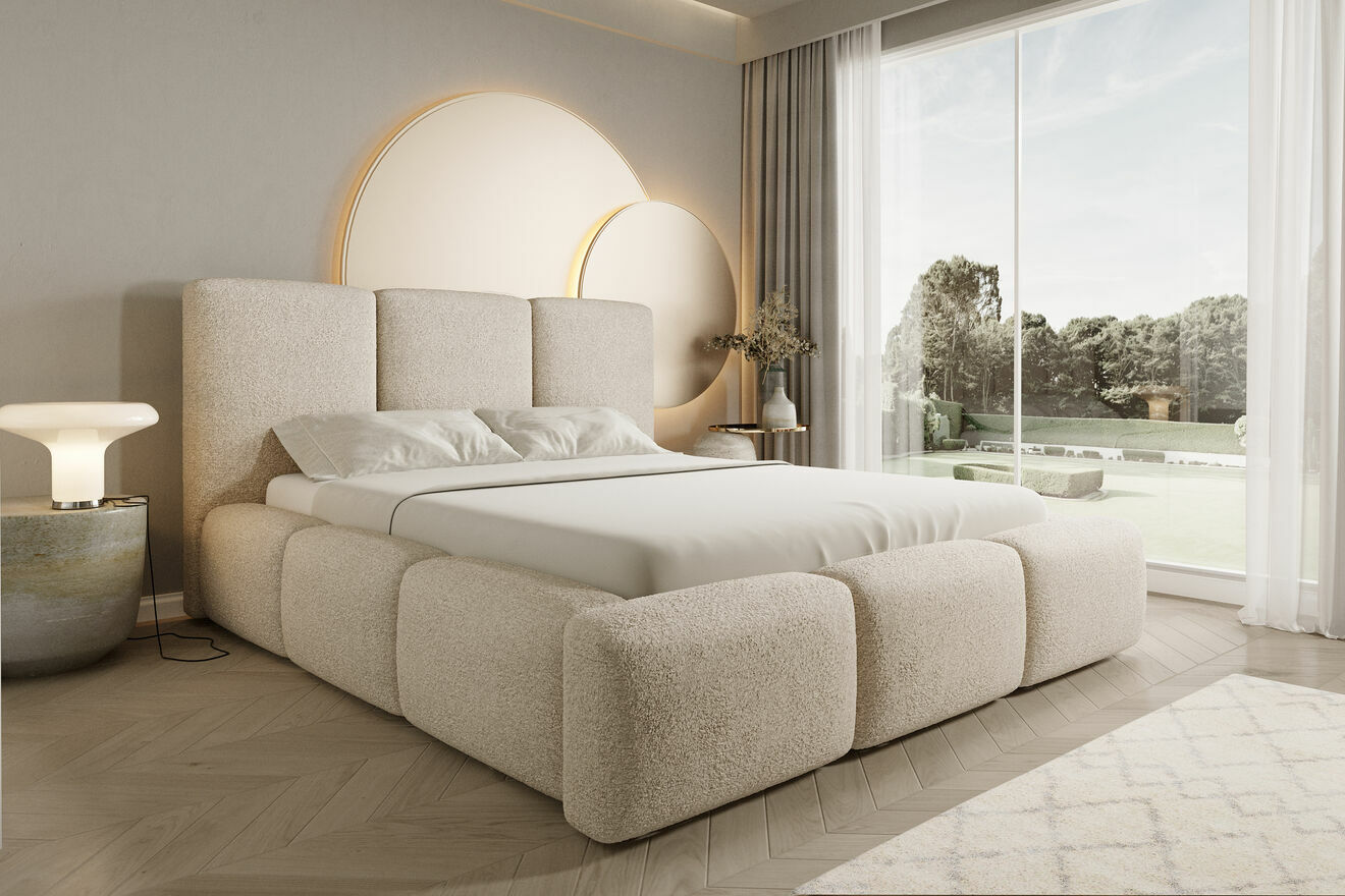 Nowoczesne łóżko sypialniane Bubble to połączenie elegancji z funkcjonalnością. Wykonane z dbałością o detale, zapewnia komfort i wygodę, dzięki grubej piance w wezgłowiu.