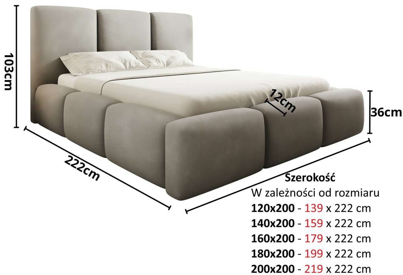 Szerokość łóżka w zależności od rozmiaru : 139/159/179/199/219