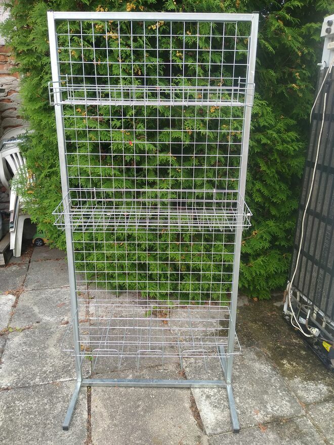 Witam Państwa. Mam do sprzedania metalowy regał do sklepu, garażu, piwnicy, warsztatu, itp. Cena 70 zł. Wysokość całkowita: 173 cm, szerokość: 80 cm. Materiał: stal ocynkowana. Półki z haczykami - możliwość dowolnej konfiguracji. Serdecznie polecam. Wiele możliwości zastosowania, w zależności od kreatywności i pomysłu. Stan jak na zdjęciach. Zapraszam do mnie do Pabianic. Proszę dzwonić wyłącznie w godz. 12:00 - 18:00 na nr 603 - pokaż numer telefonu - . Polecam przemyślenie zakupu, abyśmy się wzajemnie niepotrzebnie nie fatygowali. Nie odpowiadam na SMS i e-mejle. Pozdrawiam.Sprawdź zainteresowanie tym ogłoszeniem