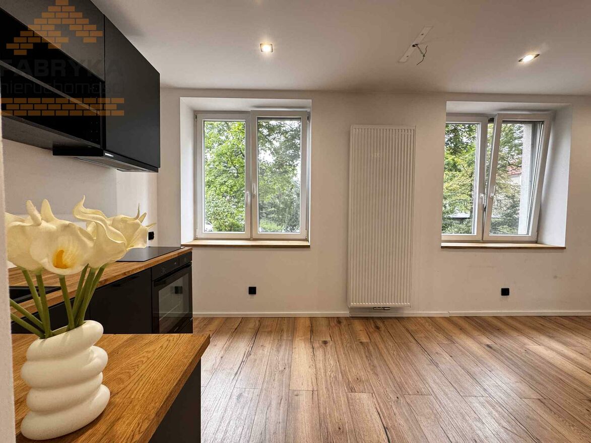 Mieszkanie przeszło generalny remont. Ściany zostały pomalowane na biało, co stanowi idealną bazę pod własne aranżacje kolorystyczne. W pokojach i przedpokoju położono panele, natomiast w łazience płytki. Sufity są podwieszane i wyposażone w nowoczesne oświetlenie. Aneks kuchenny został wyposażony w piekarnik, płytę indukcyjną oraz zmywarkę, co zapewnia wygodę codziennego użytkowania.