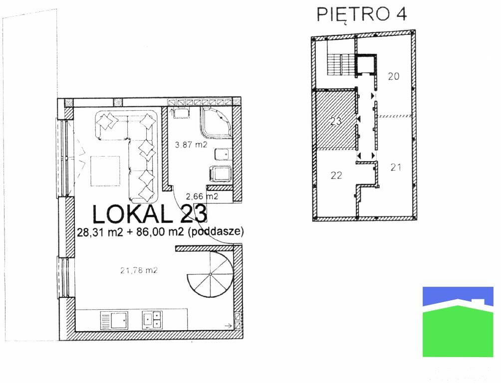 Lokal nr 23 - 114,31 m2 (1 pok. 28,31 m2 z poddaszem 86 m2 open space, taras) miejsce parkingowe w cenie