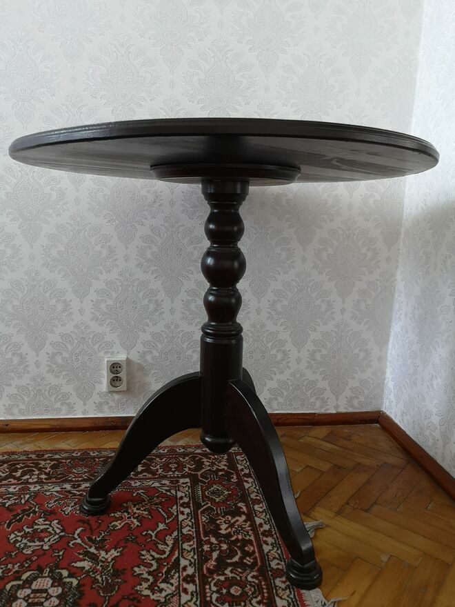 Sprzedam Stolik kawowy na jednej nodze klasyka posiadająca ponadczasowe piękno. tak można określić mój stolik.Stolik posiada okrągły blat umieszczony na stylizowanej kolumnie z trójnogiem . Zdecydowanie warte uwagi są gięcia na nogach. Stół będzie pasował do salonu lub w gabinecie oraz zamkniętym ganku.