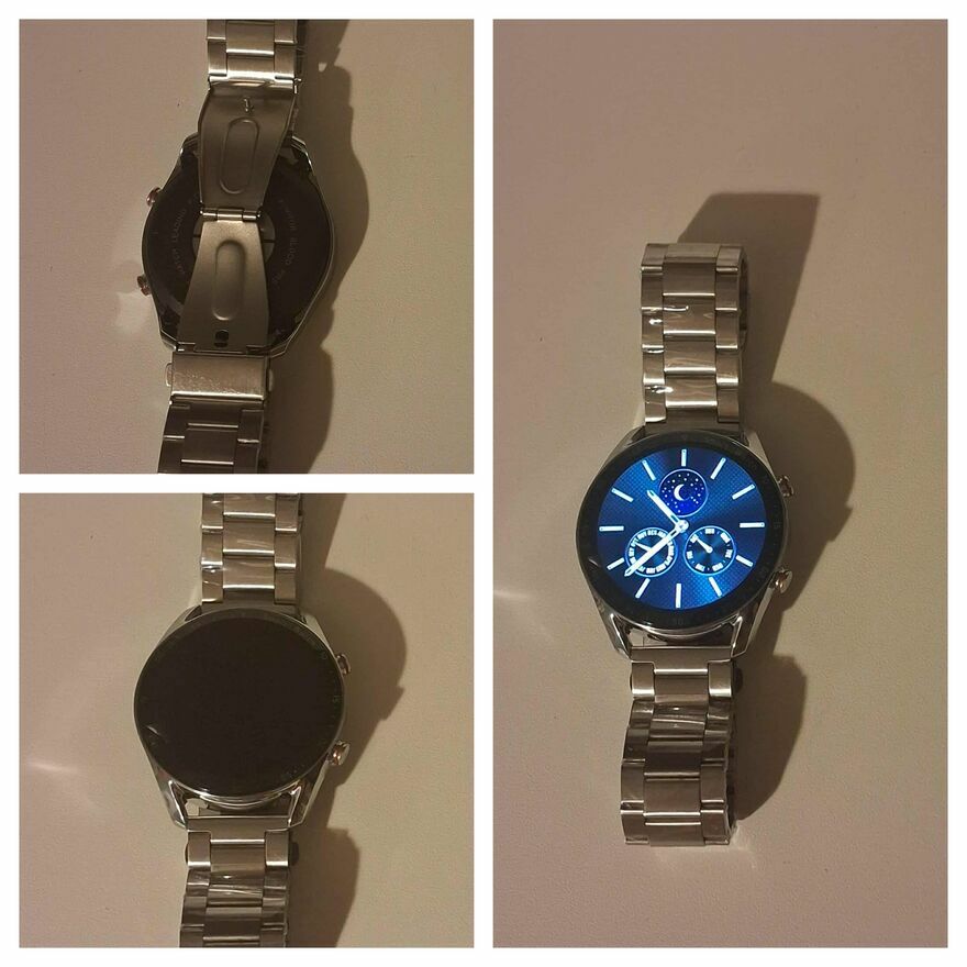 Elegancki smartwatch w stalowej obudowie i metalowej bransolecie.Wygląda jak klasyczny zegarek, a potrafi znacznie więcej: rozmowy Bluetooth, pomiar tętna i ciśnienia, licznik kroków, monitor snu i wiele innych funkcji.